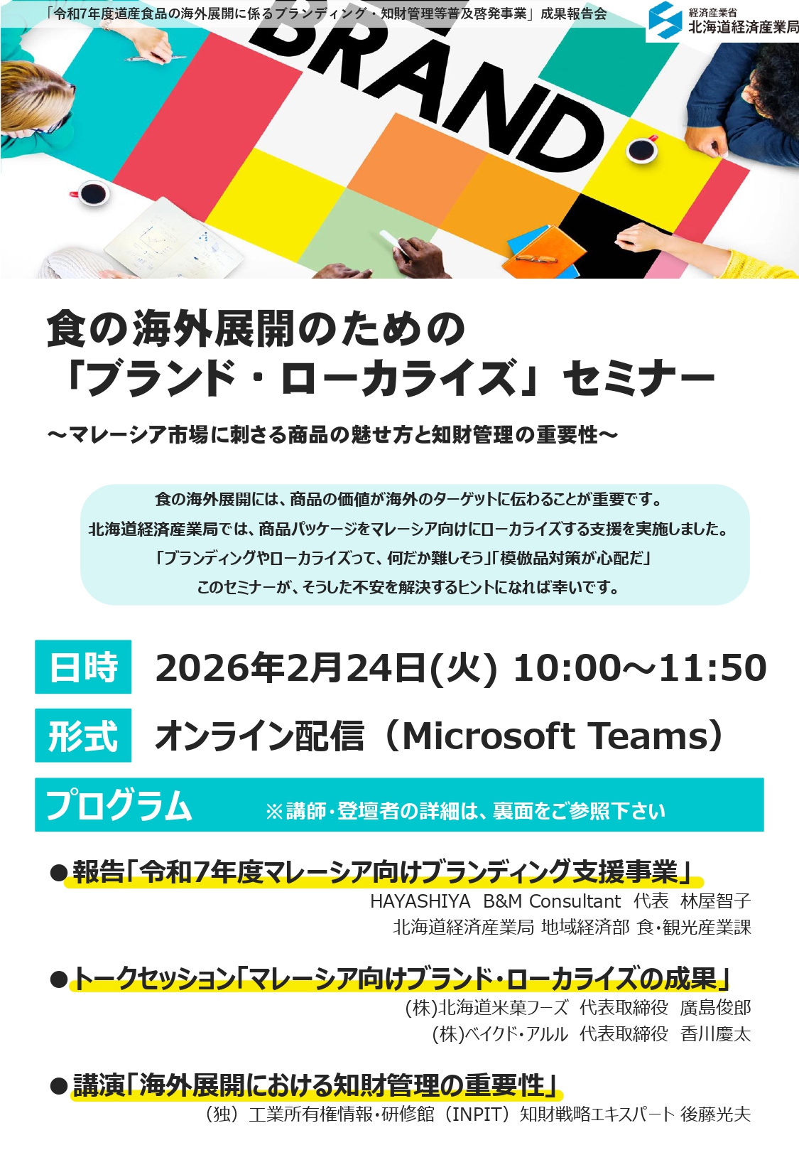 この度、本事業成果の報告と、事業者がブランド・ローカライズに取り組むヒントを提供することを目的としたオンラインセミナーを開催します。