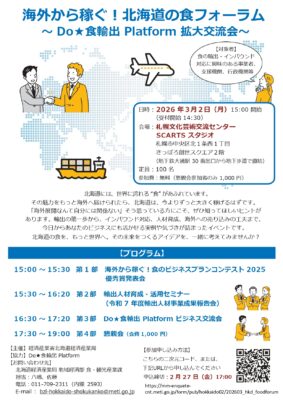 経済産業省北海道経済産業局は、北海道の農林水産物・食品分野における海外から稼ぐ力の強化を目的に、フォーラムを開催します。